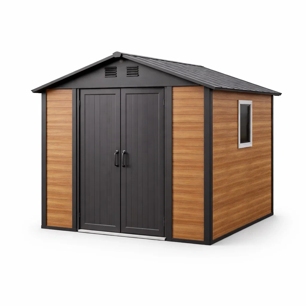 Abri de jardin en composite et métal Marron/Noir 257cm x 205cm x 202cm