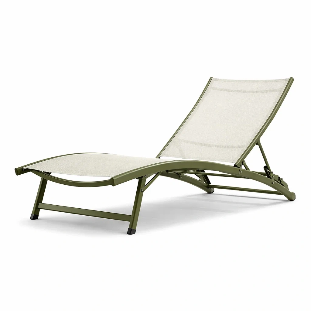 Chaise longue de jardin en aluminium vert et textilène