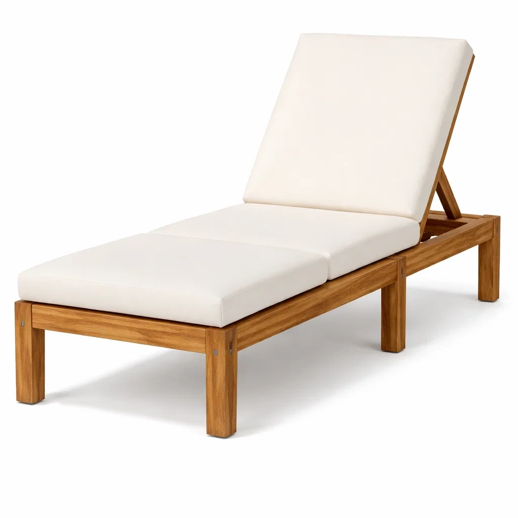 Chaise longue de jardin en teck avec coussins crème